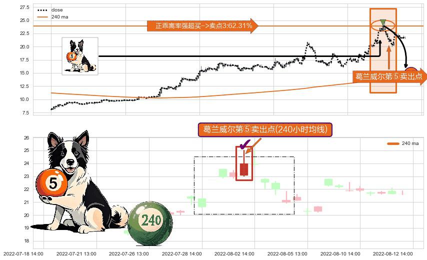 形态多维评估: ⚀ 2022-08-02 13:00:00-小时显现 葛兰威尔均线 240小时均线 第⑤卖出点 上升趋势均值回复的短线回落信号,后市看跌,卖出信号