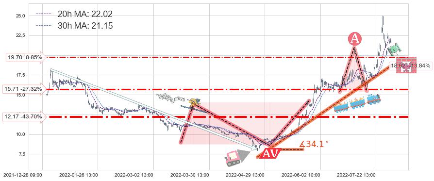 ♞ 20小时均线:22.02,30小时均线:21.15→ 快线>慢线