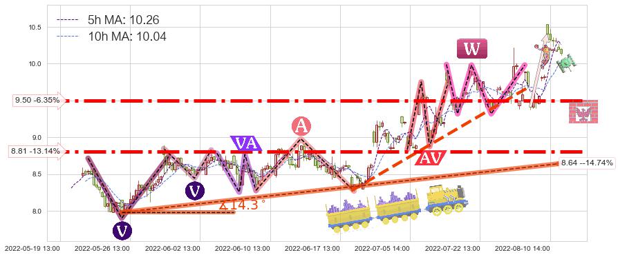 ♞ 5小时均线:10.26,10小时均线:10.04→ 快线>慢线