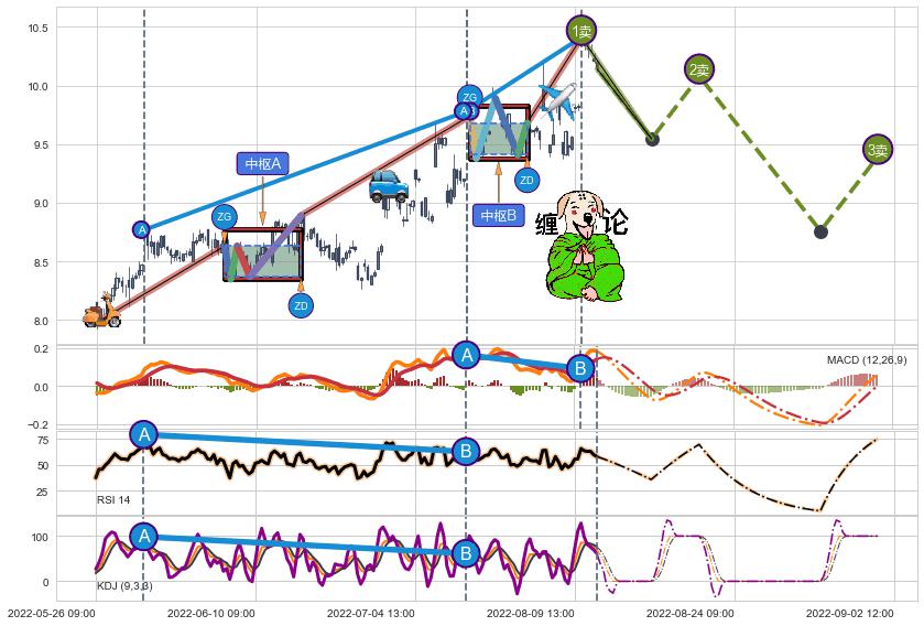 ➣ 【已完成】缠论 起点:05-26:09,完成第1中枢A,完成第2中枢B,终点:08-10:13,缠论共153交易小时
