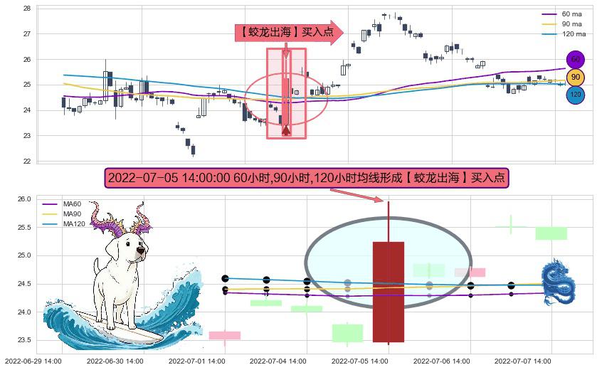 ⚀ 2022-07-05 14:00:00小时显现 60小时-90小时-120小时均线 【蛟龙出海】买入点 看多信号,后市看涨,买入