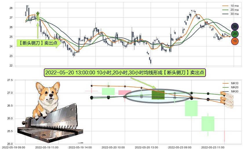 ⚀ 2022-05-20 13:00:00小时显现 10小时-20小时-30小时均线 【断头铡刀】卖出点 看空信号,后市看跌,卖出