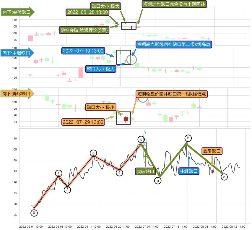 ➢ 2022-07-29 13:00形成:向下跳空【竭尽】缺口