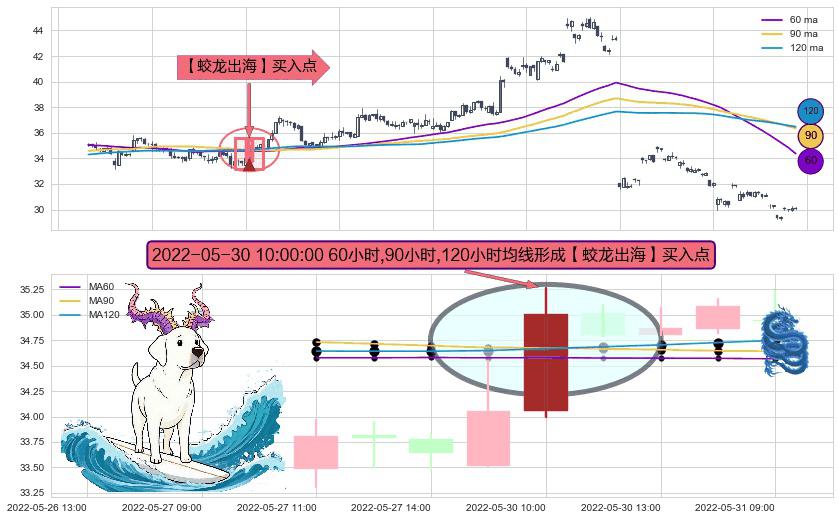 形态多维评估: ⚀ 2022-05-30 10:00:00小时显现 60小时-90小时-120小时均线 【蛟龙出海】买入点 看多信号,后市看涨,买入