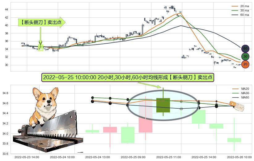 形态多维评估: ⚀ 2022-05-25 10:00:00小时显现 20小时-30小时-60小时均线 【断头铡刀】卖出点 看空信号,后市看跌,卖出