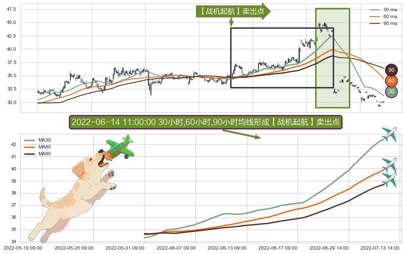 形态多维评估: ⚀ 2022-05-31 09:00:00小时-2022-07-08 14:00:00小时显现 30小时-60小时-90小时均线 【战机起航】卖出点 看空信号,后市看跌,卖出