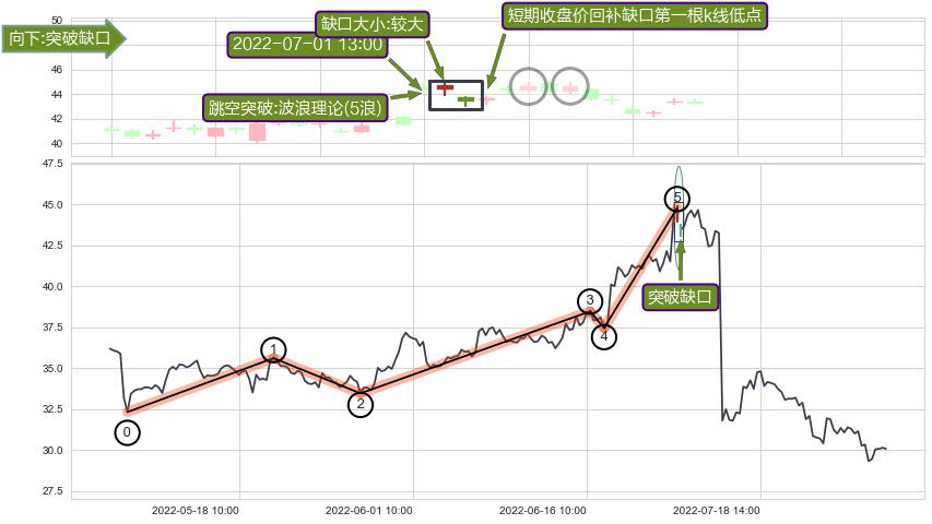 ➢ 2022-07-01 13:00形成:向下跳空【突破】缺口