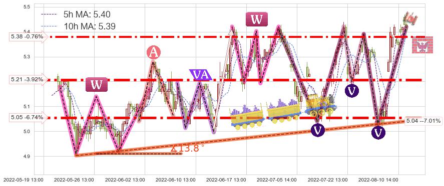 ♞ 5小时均线:5.40,10小时均线:5.39→ 快线>慢线