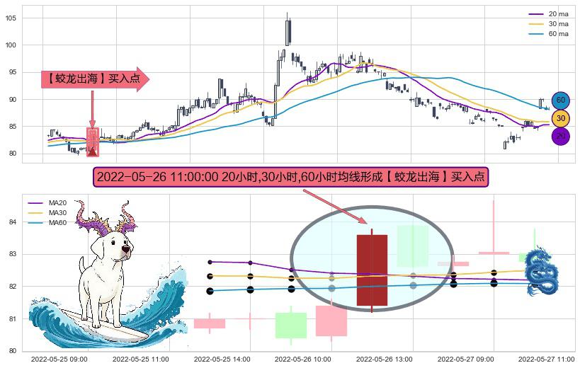 ⚀ 2022-05-26 11:00:00小时显现 20小时-30小时-60小时均线 【蛟龙出海】买入点 看多信号,后市看涨,买入