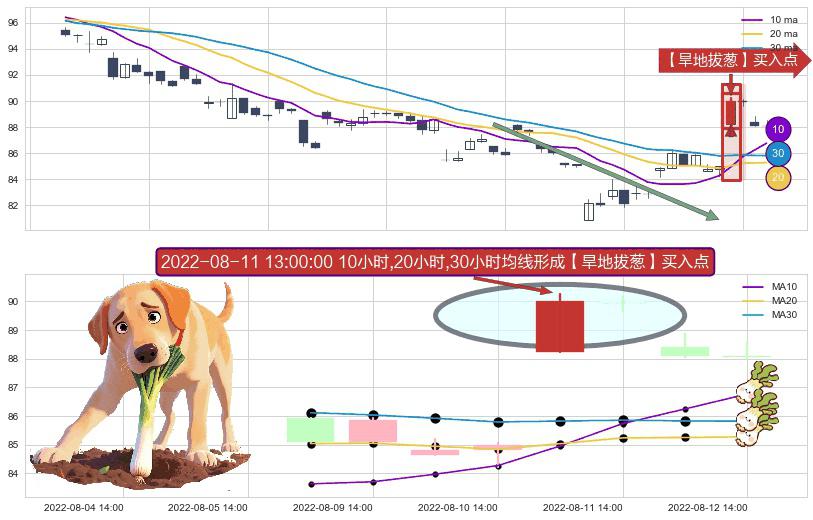 ⚀ 2022-08-11 13:00:00小时显现 10小时-20小时-30小时均线 【旱地拔葱】买入点 看多信号,后市看涨,买入
