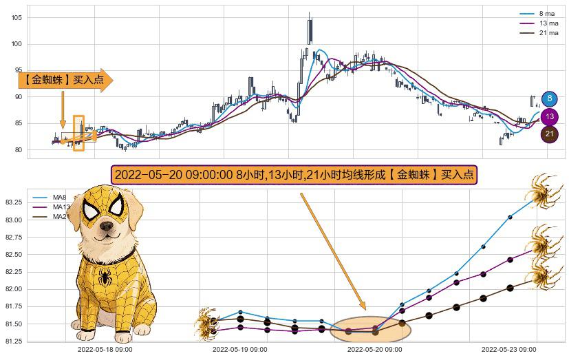 ⚀ 2022-05-20 09:00:00小时显现 8小时-13小时-21小时均线 【金蜘蛛】买入点 看多信号,后市看涨,买入