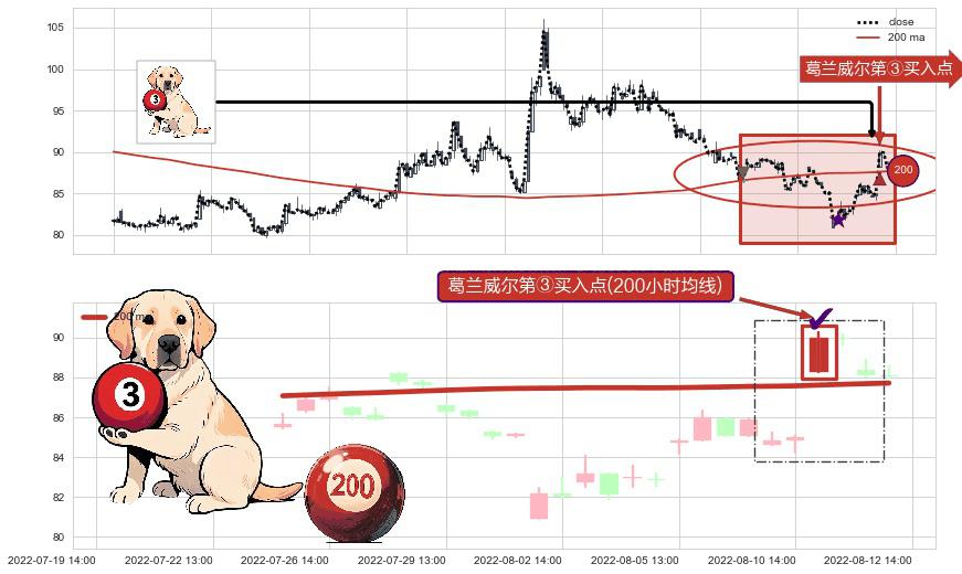 ⚀ 2022-08-11 13:00:00-小时显现 葛兰威尔均线 200小时均线 第③买入点 上升趋势的中继信号,后市看涨,买进信号