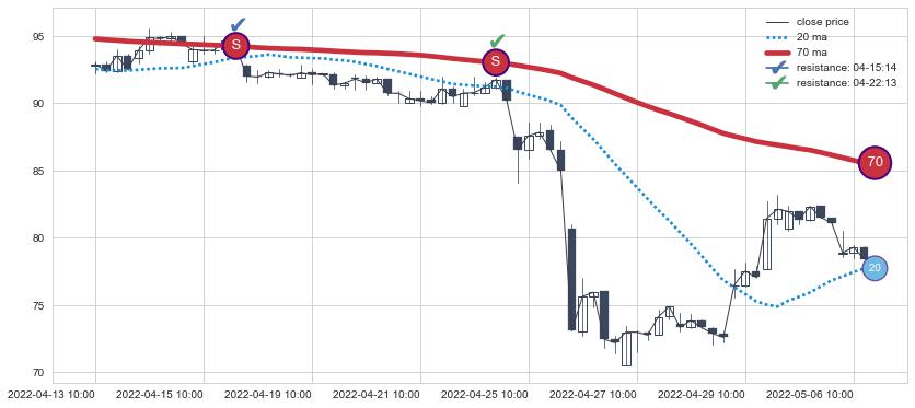 ⚂ 2022-06-30 14:00:00小时突然冒出一根大阴线,一下子下穿三条均线且收盘价收在各条均线之下
