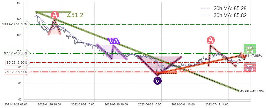 ♘ 阻力价格位97.17,可信任强度71.97%,距离最后交易2022-08-12 14:00形成的收盘价格88.07相差 +10.33%
