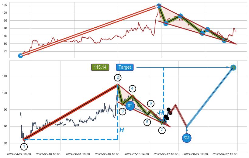 ➣ AI预测: 假定反转启动后, 第❶目标位置(12-12:09, 114.70)