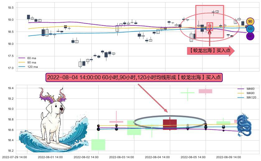 ⚀ 2022-08-04 14:00:00小时显现 60小时-90小时-120小时均线 【蛟龙出海】买入点 看多信号,后市看涨,买入