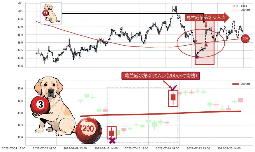 ⚀ 2022-07-19 13:00:00-小时显现 葛兰威尔均线 200小时均线 第③买入点 上升趋势的中继信号,后市看涨,买进信号