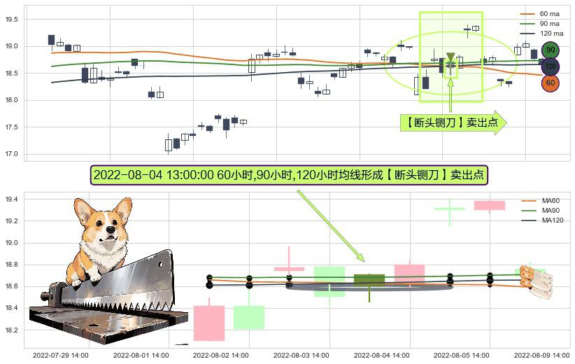 ⚀ 2022-08-04 13:00:00小时显现 60小时-90小时-120小时均线 【断头铡刀】卖出点 看空信号,后市看跌,卖出