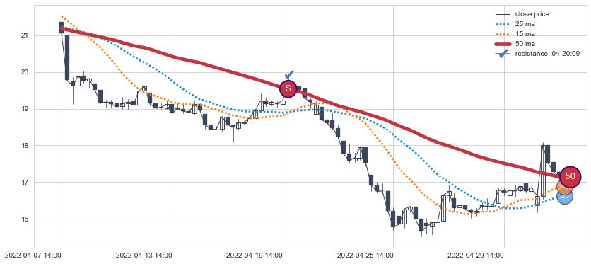 ⚂ 2022-08-04 14:00:00小时突然冒出一根大阳线,一下子顶穿三条均线且收盘价收在各条均线之上