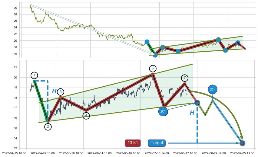 ➣ D点拟合预测价格24.33,距离最后交易收盘价格18.65相差 +30.45%
