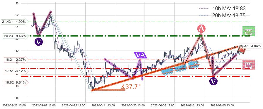 ♘ 阻力价格位20.23,可信任强度71.86%,距离最后交易2022-08-12 14:00形成的收盘价格18.65相差 +8.46%
