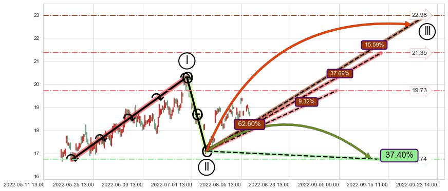 ➣ 循环浪继续向上【平均值】位置(09-14:10, 21.35),匹配聚类样本比例60.21%, 可能性概率37.69%