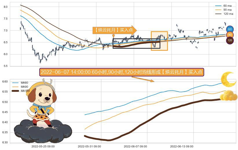 ⚀ 2022-05-27 13:00:00小时-2022-06-15 14:00:00小时显现 60小时-90小时-120小时均线 【烘云托月】买入点 看多信号,后市看涨,买入
