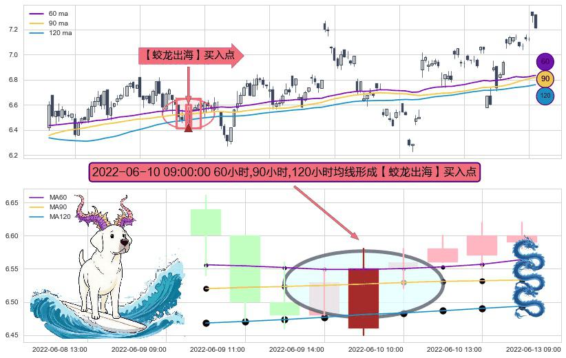 ⚀ 2022-06-10 09:00:00小时显现 60小时-90小时-120小时均线 【蛟龙出海】买入点 看多信号,后市看涨,买入