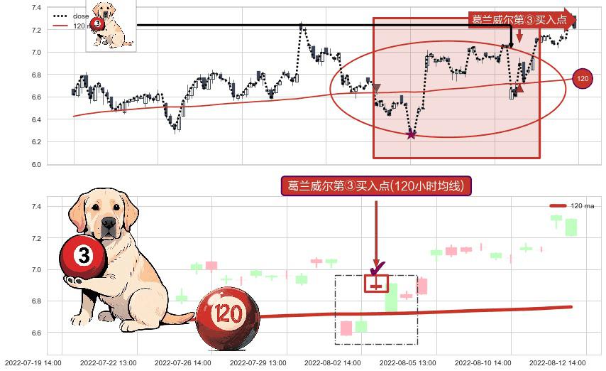 ⚀ 2022-08-03 13:00:00-小时显现 葛兰威尔均线 120小时均线 第③买入点 上升趋势的中继信号,后市看涨,买进信号