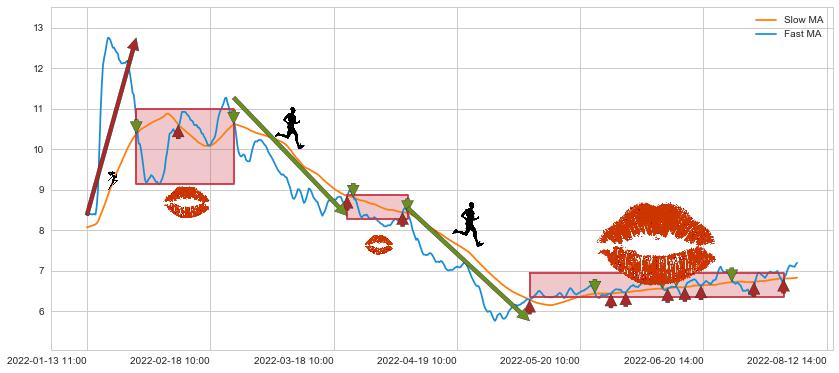 03-22 11:00至04-07 10:00 慢线与快线多次接触,存在上下穿越,有缠绕