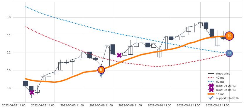 ⚅ 买点向上突破均线后,价格持续向上走高,向上动能充足,均线斥力助涨效果明显