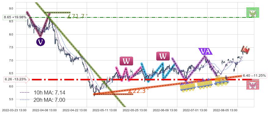 ♘ 支撑价格位6.26,可信任强度98.33%,距离最后交易2022-08-12 14:00形成的收盘价格7.21相差 -13.23%