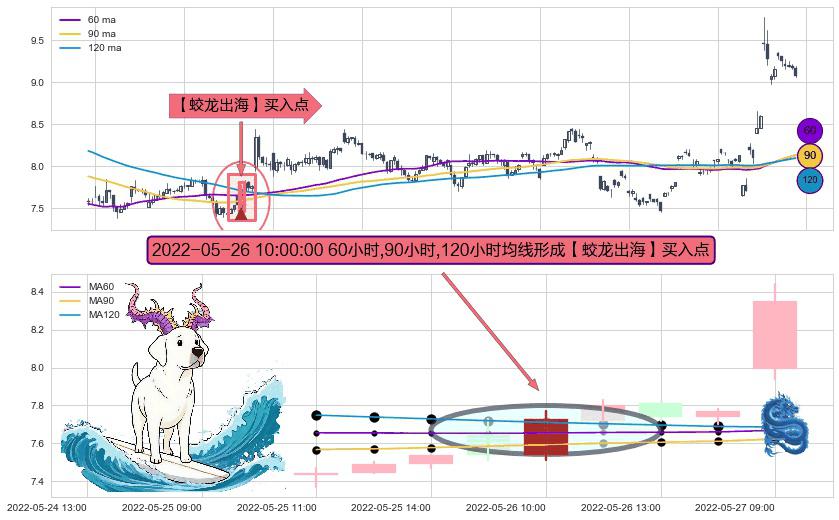 ⚀ 2022-05-26 10:00:00小时显现 60小时-90小时-120小时均线 【蛟龙出海】买入点 看多信号,后市看涨,买入