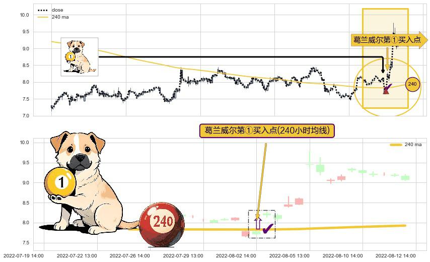 ⚀ 2022-08-02 14:00:00-小时显现 葛兰威尔均线 240小时均线 第买①入点 走势反转见底信号,后市看涨,买进信号