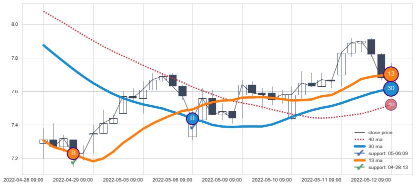 ⚁ MA20和MA30走势平行,且始终保持在短距离内,MA60始终在短中期均线下方,与短中期均线保持一定的距离,微微上行