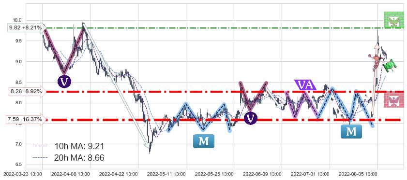 ♘ 阻力价格位9.82,可信任强度54.29%,距离最后交易2022-08-12 14:00形成的收盘价格9.07相差 +8.21%