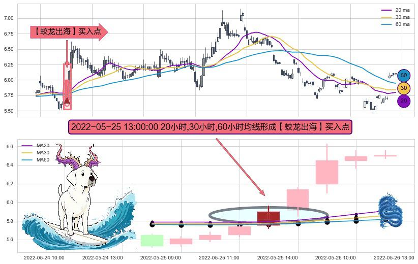 ⚀ 2022-05-25 13:00:00小时显现 20小时-30小时-60小时均线 【蛟龙出海】买入点 看多信号,后市看涨,买入