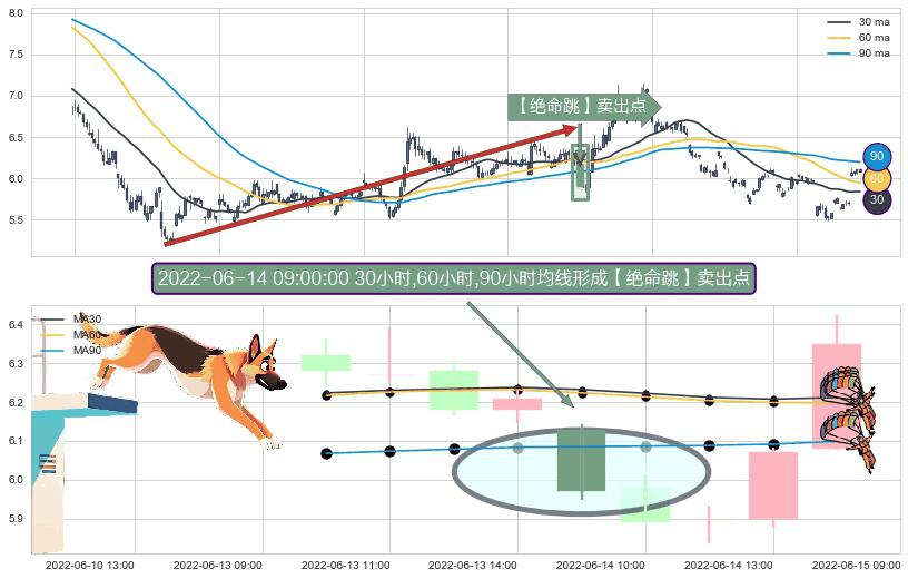 ⚀ 2022-06-14 09:00:00小时显现 30小时-60小时-90小时均线 【绝命跳】卖出点 看空信号,后市看跌,卖出