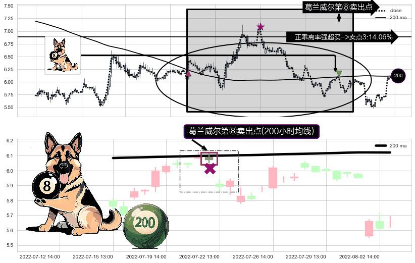 ⚁ 200小时均线 第⑧卖出点 属于 均线服从 信号,属于趋势运行的【常态】即信号期望为下降趋势的中继