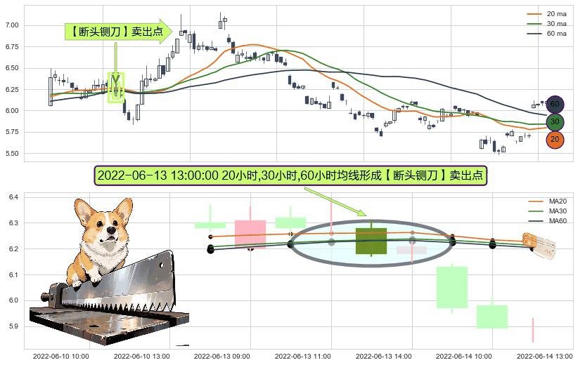 ⚀ 2022-06-13 13:00:00小时显现 20小时-30小时-60小时均线 【断头铡刀】卖出点 看空信号,后市看跌,卖出