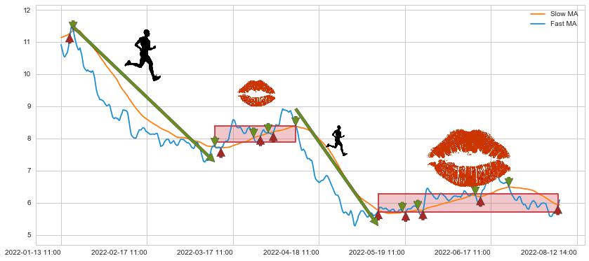 01-18 10:00至03-11 10:00 慢线与快线呈空头排列, 慢线与快线接触少,无缠绕
