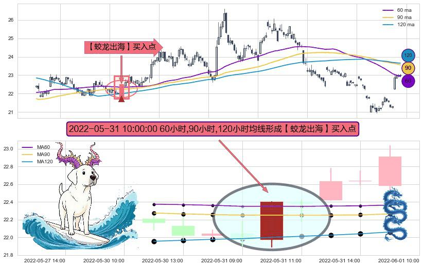 ⚀ 2022-05-31 10:00:00小时显现 60小时-90小时-120小时均线 【蛟龙出海】买入点 看多信号,后市看涨,买入