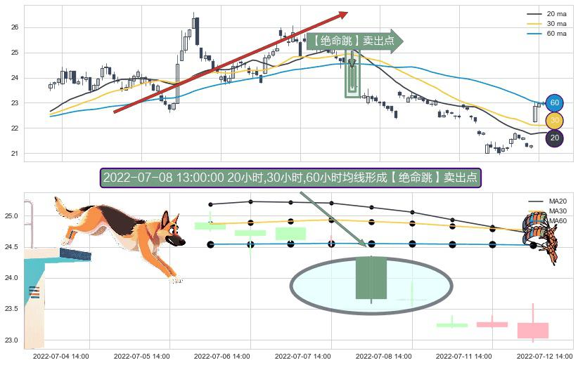 ⚀ 2022-07-08 13:00:00小时显现 20小时-30小时-60小时均线 【绝命跳】卖出点 看空信号,后市看跌,卖出