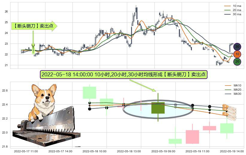 ⚀ 2022-05-18 14:00:00小时显现 10小时-20小时-30小时均线 【断头铡刀】卖出点 看空信号,后市看跌,卖出