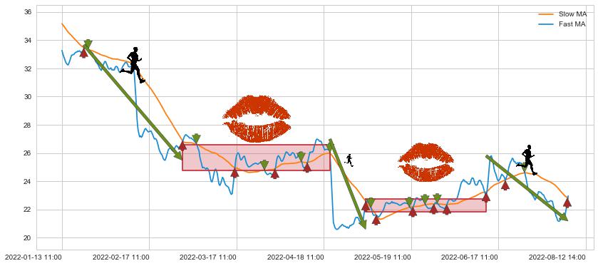 06-14 13:00至08-12 14:00 慢线与快线呈空头排列, 慢线与快线接触少,无缠绕