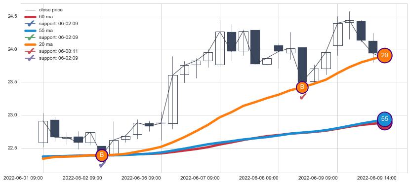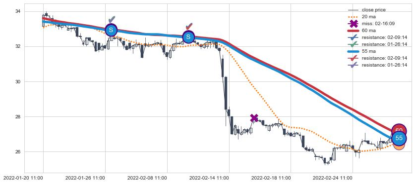 ⚃ 在破位点附近ma走势已有下垂迹象,稍后的走势中ma下降趋势明显,信号【可信度高】