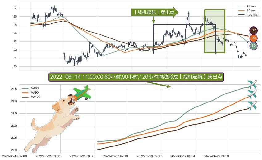⚀ 2022-05-31 11:00:00小时-2022-07-07 14:00:00小时显现 60小时-90小时-120小时均线 【战机起航】卖出点 看空信号,后市看跌,卖出