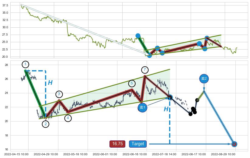 ➢ 【已确认突破】最后价格:22.95与最小【整理】第一目标价格→(08-29:10: 16.75 )相较: 下跌空间【较大】