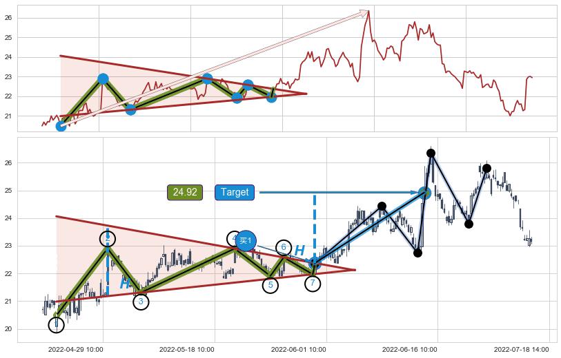 ➢ 【买1】: 激进型 买点 →(05-31:10: 22.38 )形成突破上升【对称】三角形整理【整理】形态