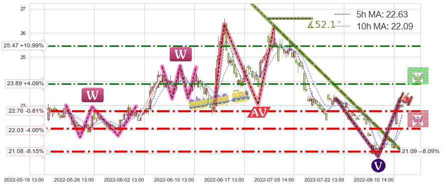 ♘ 阻力价格位25.47,可信任强度58.50%,距离最后交易2022-08-12 14:00形成的收盘价格22.95相差 +10.99%